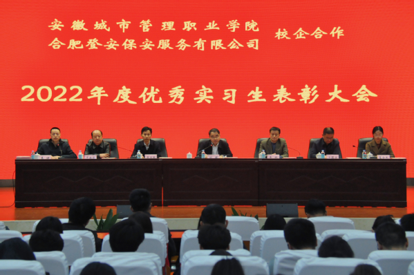 刘瑾代表学校对24名荣获“优秀实习生”称号的学生表示祝贺。他指出,合肥登安保安服务有限公司与我校合作在此举办优秀实习生表彰活动,对于推进我校教学改革,提高学生的动手能力,促进学生的就业等方面具有极为重大的意义;同时希望以此为契机,今后不断拓展与企业合作办学的渠道,促进我校办学观念与办学模式的转变,促进专业建设与教学改革,促进师资队伍建设,提高人才培养水平,更好地解决学生的实习和就业问题,提高我校为当地经济社会服务的能力。他强调,同学们即将毕业,在今后的人生道路上要把握机遇,牢牢抓住学校、企业、父母共同提供的良好学习机会,认真学好专业技能,成为对社会有贡献的有用之才。